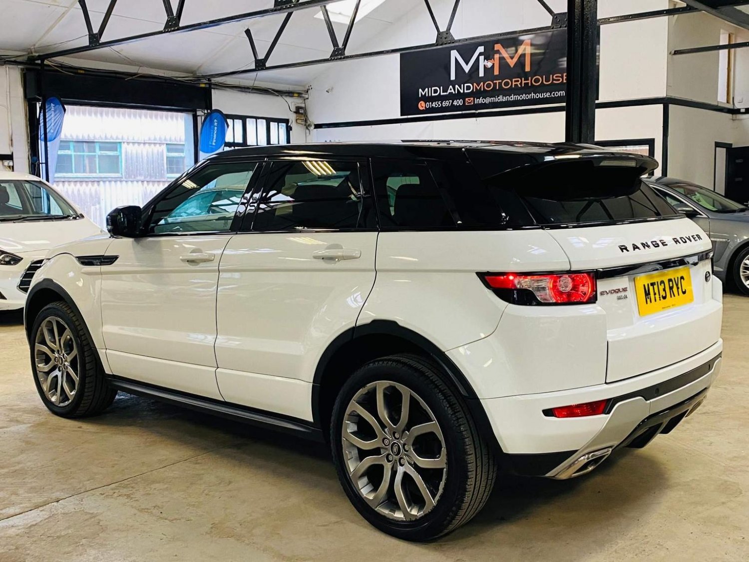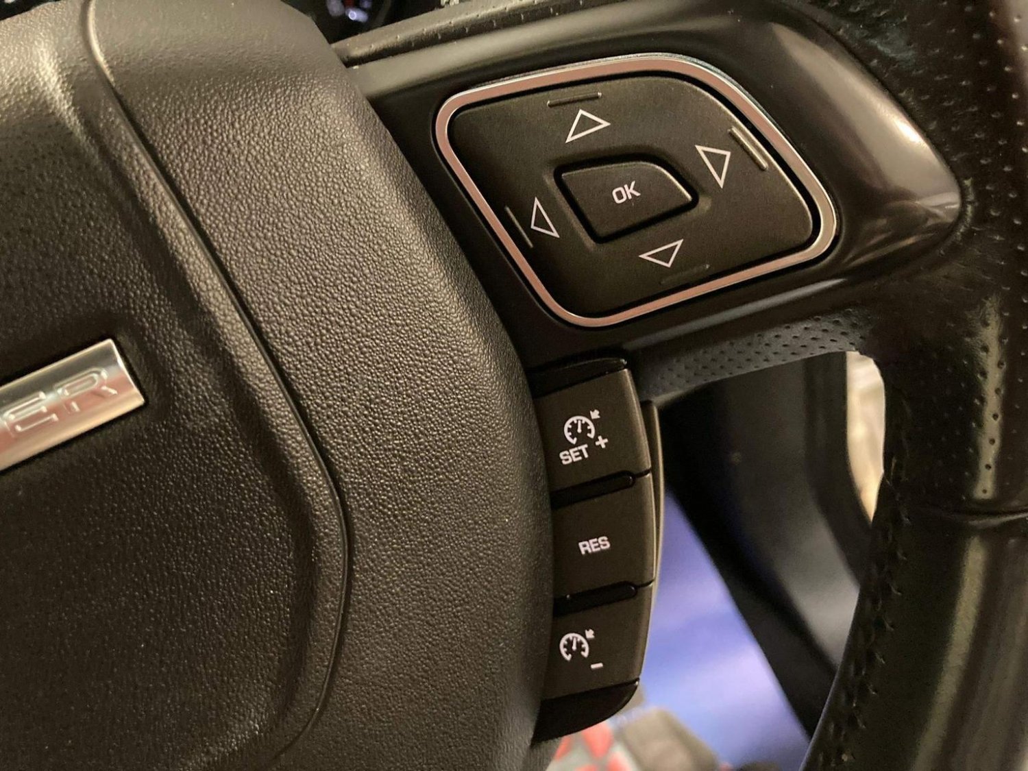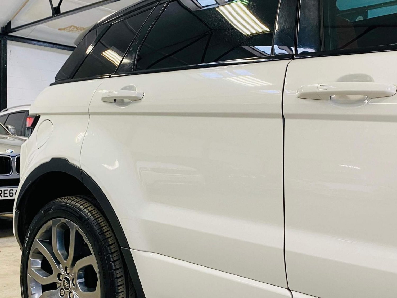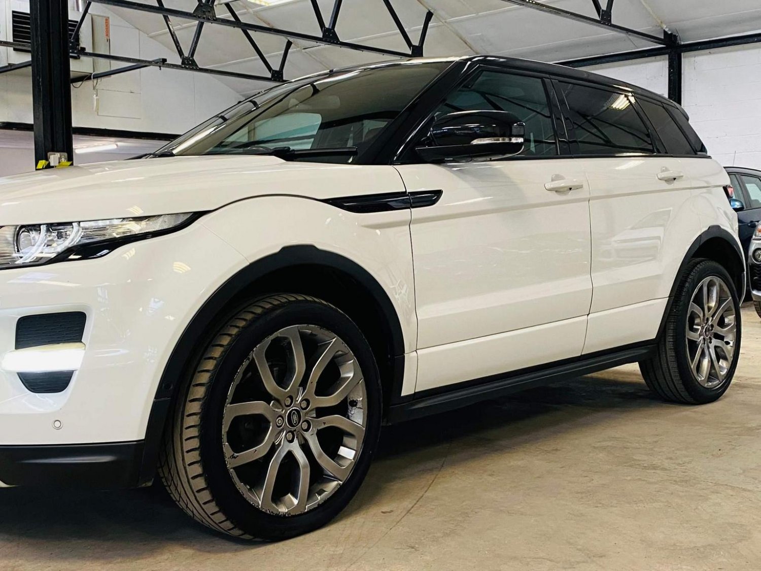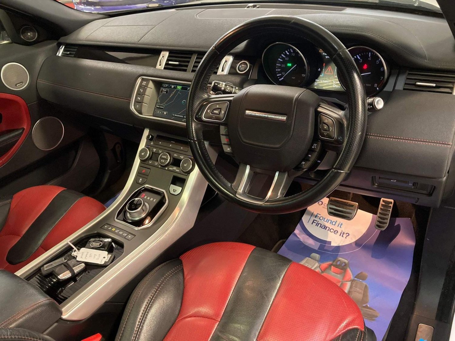 10 Speakers, 20in Alloy Sport Style 6 - Sparkle Silver, 3.5mm Stereo Auxiliary Input Socket, 380W Meridian Surround Sound System, 5in TFT Driver Information Centre, 8in High Resolution Touch Screen, ABS - Anti Lock Braking System, Adaptive Dynamics, Airbags - Driver Knee, Airbags - Full Size Driver, Airbags - Full Size Passenger, Airbags - full length curtain, Alarm System - Volumetric, Aluminium Pedal Finisher Kit, Armrest - Rear Centre with Storage Compartment and 2 Cupholders, Audible Seat Belt Warning, Audio Connectivity System, Audio System - 380 Watt Meridian Sound System with Radio and Single Slot CD, Audio System - DAB, Automatic Headlight Levelling, Automatic Headlights, Auxiliary Heater - Electrical Positive Temperature Coefficient, Auxillary Power Sockets - Rear and Load Space, Auxillary Power Sockets - front-rear and load space, Bluetooth Telephone Connectivity, Carpet Mats with Edging, Centre console - Covered Storage Compartment, Climate Control - Automatic with Air Filtration, Cornering Lights, Cruise Control, Cupholders x2, DSC - Dynamic Stability Control, Door Mirrors - Electrically Adjustable - Heated and Power Folding with Memory Function, Dynamic Exhaust, Dynamic Front Bumper, Dynamic Perforated Leather Steering Wheel, Dynamic Rear Bumper, Dynamic Side Sills, Dynamic grille in Narvik Black, EBA - Emergency Brake Assist, EBD - Electronic Brake-Force Distribution, EDC - Engine Drag Torque Control, EPAS - Electronic Power Assisted Steering, EPB - Electronic Park Brake, Electric drivers and passenger seat adjustment, Evoque Badge in Red, Exterior Mirrors - Auto Dipping in Reverse Gear, Exterior mirror caps in Narvik black, Four electric windows with one touch opening, Front Fog Lights, Global opening for windows - windows open via remote key, HDC - Hill Descent Control, HDD Premium Navigation with Touch Screen, HSA - Hill Start Assist, Hazard Warning Lights Under Heavy Braking, Headlight Power Wash, Heated Front Seats, ISOFIX Child Seat Anchor Points, Illuminated tread plates, Illumination - Footwell, Illumination - Front Header Cour with delay Theatre dimming + Maplights, Illumination - Glovebox, Illumination - Load Compartment Light, Illumination - White Lighting in door release and over head console downlighter, Interior Mood Lighting, Land Rover - Tyre Repair System, Leather Gear Knob, Light Pipe with Controllable Colour and Intensity x2 - LED, Locking Wheel Nuts, Luggage Compartment - Anchor Points, Luggage Cover, Lumbar Support, MP3 disc and file compatibility, Memory and electric passengers recline, Parking Aid - Front, Parking Aid - Rear, Parking Aid - Rear View Camera, Proximity Sensing and Touch Detection For Overhead Map Lights, Push Button Start, RSC - Roll Stability Control, Rain Sensing Windscreen Wipers, Range Rover Smart Key Controls - Remote lock-Unlock-Double Lock-Lights on Tailgate Open, Rear spoiler, Remote Central Locking, Seats - 60/40 Split, Seats - Rear Centre Head Restraint, Side Fender Blade Grille and Tailgate Finisher in Narvik black, Side sill mouldings, Steering Column - Manual For Height and Reach Adjustment, Steering Wheel Mounted Audio Controls, Subwoofer, Sun Visors - Illuminated Vanity Mirrors, TCS - Traction Control System, TMC - Dynamic route guidance, TSA - Trailer Stability Assist, Terrain Response, Textured aluminium centre console finisher and textured aluminium IP finisher, USB Connectivity, Voice Control - Say What You See, Waist finisher - High Gloss Black, Windows - Heated Rear Windscreen, Windscreen - Heated, Windscreen Washer Jets - Heated, Xenon Headlamps with LED Signature