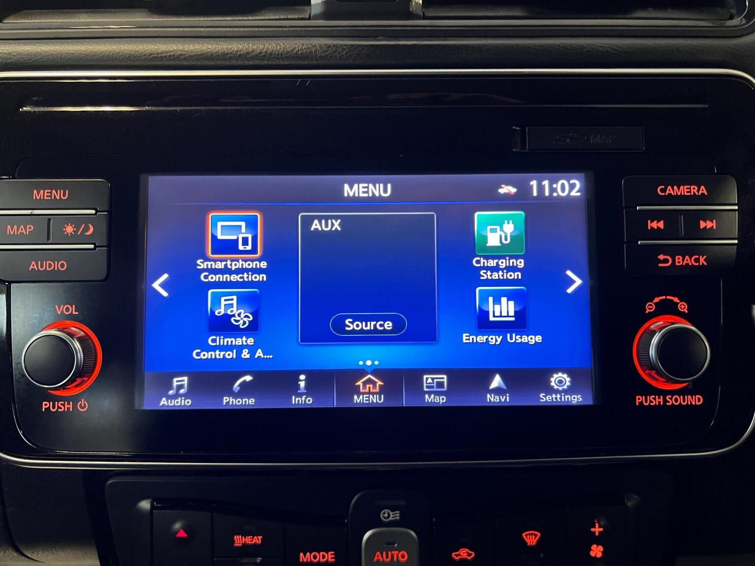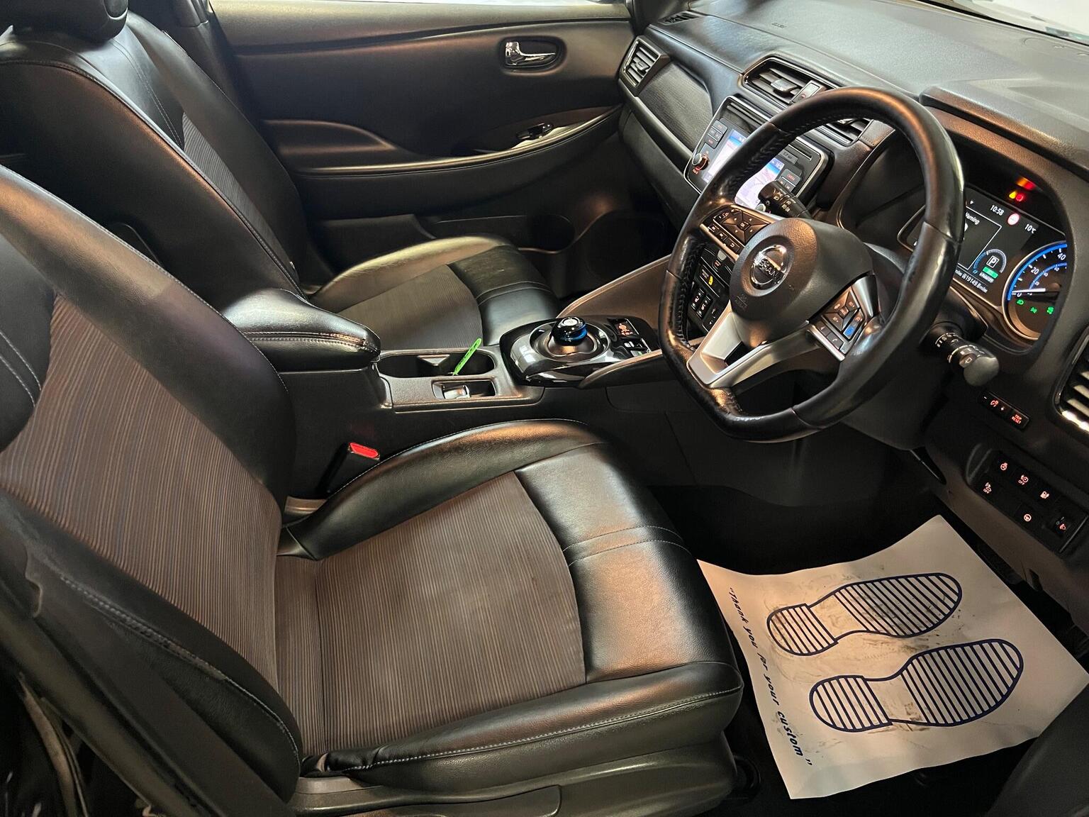 EVSE 6M or Mode 3 - 6M, Electric Folding Door Mirrors, Electric Speed-Sensitive Power Steering, Faster Heater, Follow Me Home Headlights, Forward Emergency Braking with Pedestrian Recognition, Front Fog Lights, Front Seat Back Pockets, Front and Rear Electric Windows, Gloss Black B-pillar, Halogen Headlamps with LED Signature, Heated Front and Rear Seats - Heated Steering Wheel, Hill Start Assist, I-Key and PES, ISOFIX on Rear, Integrated Turn Signals in Mirrors, Intelligent Cruise Control, Interior Rear View Mirror with Auto Dimming, Leather Steering Wheel, Manually Adjustable Drivers Seat - Slide - Recline and Lifter, Manually Adjustable Passenger Seat - Slide and Recline, Nissan Connect 2 Kai2 Navi with DAB and Apple Carplay - Android Auto, Nissan Connect EV, Nissan Connect EVO 7in Touchscreen Navigation and Entertainment System, Parking Sensors 4x Front - 4x Back, Quick Charger Capacity, Rear Lamp Styled LED, Rear Privacy Glass, Speed Limiter, Steering Wheel - Heated, Tilt Adjustable Steering Wheel, Trip Computer, 1 USB Port, 12V Socket, 17in Alloy Wheels, 6 Airbags, 6.6kW AC On Board Charger, ABS with EBD, AVM with Moving Object Detector, Alarm - Thatcham, Audio System with 6 Speakers, Auto Hazard Lights, Auto Rain Sensing Wipers, Automatic Headlights - Dusk Sensor, Body Coloured Door Mirrors, Brake Assist, Door Handles - Chrome, E-Pedal, ESP - Electronic Stability Programme, EV Connect Telematics System